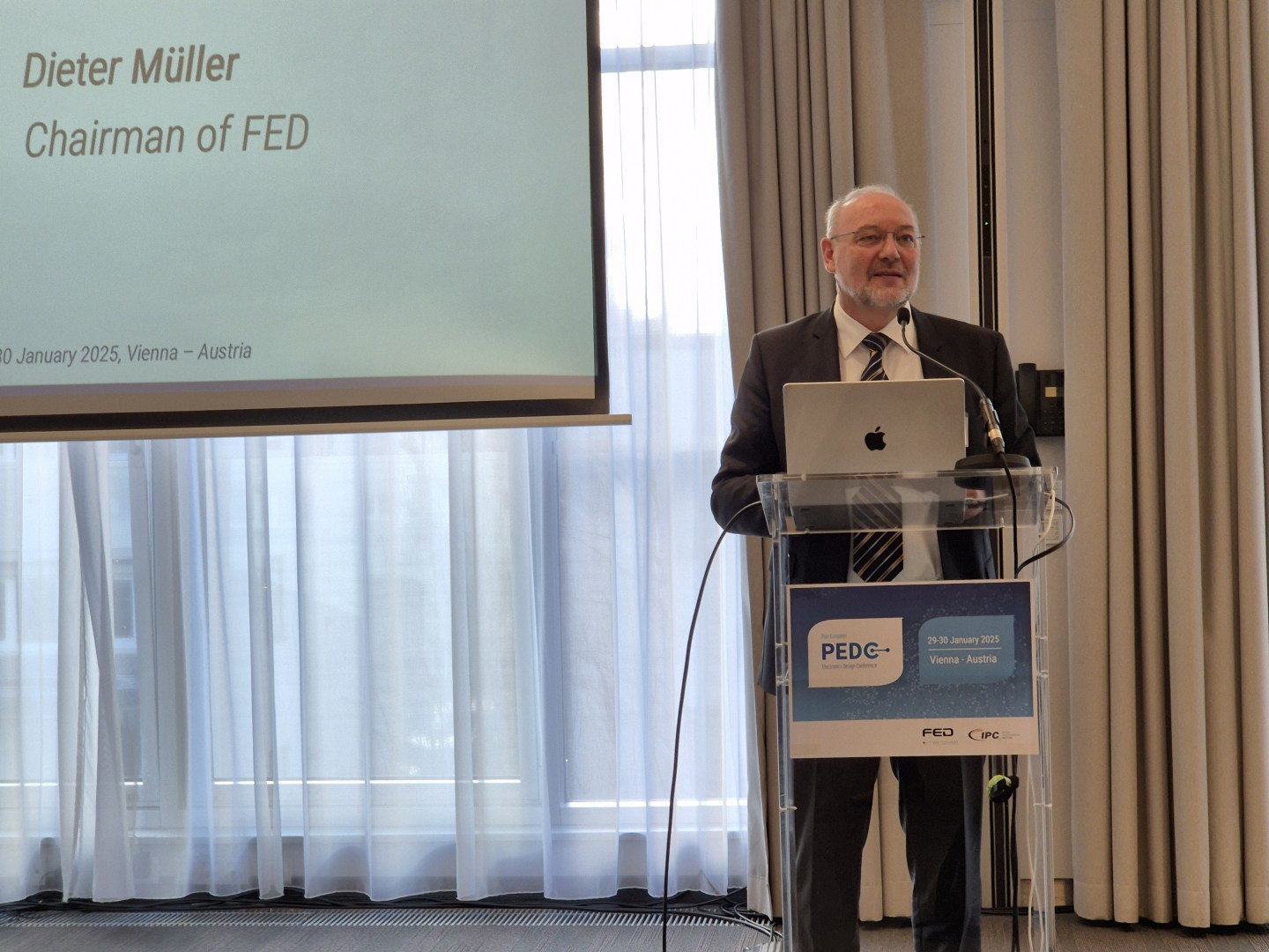 Vienna, January 30, 2025 – The first Pan-European Electronics Design Conference (PEDC) in Vienna was a great success. The new international conference, organized by Fachverband Elektronikdesign und -fertigung e. V. (FED) and IPC, brought together experts and industry representatives from twenty countries and four continents. The aim of the PEDC was to create a new European platform for the exchange of information on current developments and trends in electronics design.